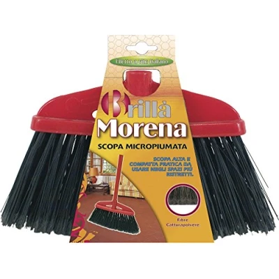 AmazonMorena Broom is a high broom for indoor use. Its particularly thin and ultra-compact shape, makes it very agile between the furnishings entering even the smallest spaces Microfeathered bristles capture and retain dust. The inclination of the fibres allows the perfect cleaning of the corners Universal handle attachment (handle not included) Washing instructions: washable at a temperature of no higher than 60 °C. Allow to dry with the bristles facing up Composition: bristles 35% PVC, 35% PET, 30% polypropylene, clapboard 50% polypropylene, 50% polyethylene