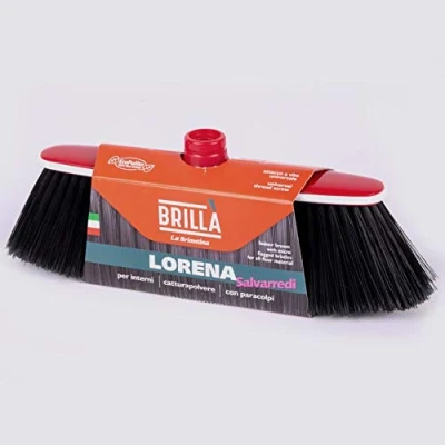Lorena Broom Protector is an indoor broom with soft rubber bumper edge Thanks to the fine micro-feathered bristles it is suitable for cleaning all floors in the home, even the most delicate ones Universal handle attachment (handle not included) Washing instructions: washable at a temperature of no higher than 60 °C. Allow to dry with the bristles facing up Composition: 100% recycled PET bristles, 100% moplen clapboard, rubber edge