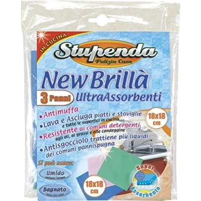 Versatile: the New Dry mop is the ideal all-round product for cleaning all household surfaces. Especially suitable for plates and glasses. Pack of 3 cloths Double finish: smooth and smoother layer to remove dirt Extra absorbent: made of pure cellulose with reinforced polyester inner net, absorbs and stores large amounts of water Use and washing instructions: use lightly damp. Rinse the cloths without twisting. They air dry out. Just get wet and they will be soft Dimensions: 18 x 18 cm for towel // Composition: 95% cellulose, 5% polyester // Packaging: 3 terry cloth