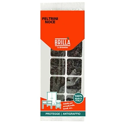 The square walnut furniture gliders are 8 perfect self-adhesive felt pads that help prevent noise when moving and protect furniture and floors from abrasion or grooves Scratch resistant and self-adhesive, ideal for cabinets, chairs, tables and other furniture and furniture in your home Box contents: 8 pieces Dimensions: 2.5 x 2.5 cm; height: 2 mm; colour: walnut; shape: square Composition: felt gliders 100% polyester, adhesive 100% Hotmelt