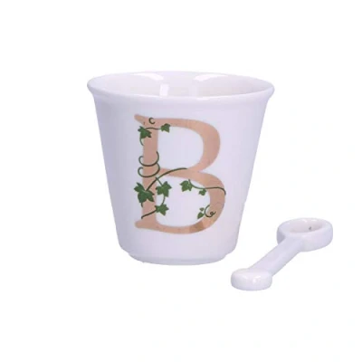 La Porcellana Bianca Letter B Cup with Spoon Home Furniture, Kitchen Unique Line Gift Idea Porcelain 75 CC; Diameter 6.7; H 6 cm