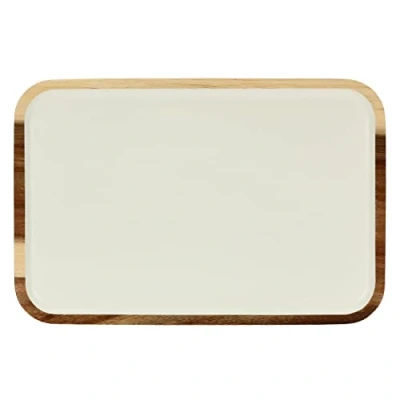 AmazonMATERIAL - Enamelled Wood SIZE - 30.5x20.5x1.8cm Care - Hand wash; Avoid prolonged contact with water, Do not use abrasive sponges, Do not use in the oven, Do not use in the dishwasher. The maximum operating temperature is 70°C
