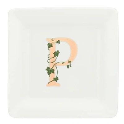 PRODUCT - Square Saucer Letter P CATEGORY - HomeFurniture, Kitchen PRODUCT CARE - Suitable for use in microwave and dishwasher; do not use abrasive sponges MATERIALS - Porcelain DIMENSIONS - 10x10xh1,5 cm