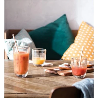This La Rochere Ouessant Tumbler is made from heat resistant glass featuring a ribbed pattern with a marine connotation, inspired by the hull of a Breton boat.This La Rochere Ouessant Tumbler is great for serving cool drinks, iced coffee and water for family and friends. Made in France this Tumbler is sturdy and durable with thick glass for a comfortable and reassuring feel.Part of the La Rochere Ouessant collection, the Tumbler can be mixed and matched with other items (sold separately).The La Rochere Ouessant Tumbler has a capacity of 290ml and is dishwasher safe for easy and convenient cleaning.