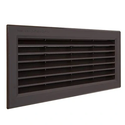 Rectangular ventilation grille made of plastic, brown, recessed Complete with insect net External dimensions 315 x 136 mm Suitable for holes 275 x 96 mm Air passage 190 cm², Manufacturer: La Ventilazione