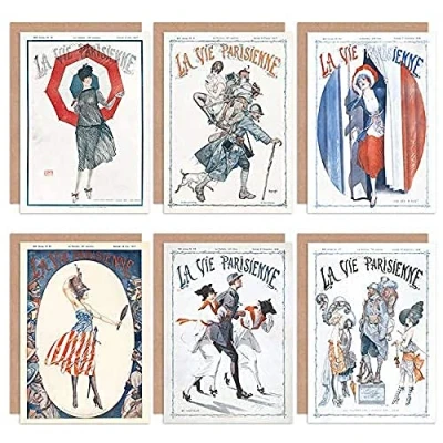 La Vie Parisienne French Woman Army War US Victory Greeting Cards With Envelopes Pack of 6
