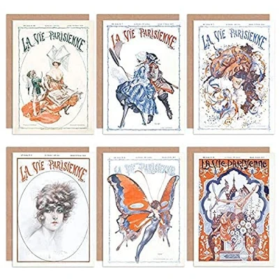 La Vie Parisienne French Woman Butterfly Carnival Greeting Cards With Envelopes Pack of 6