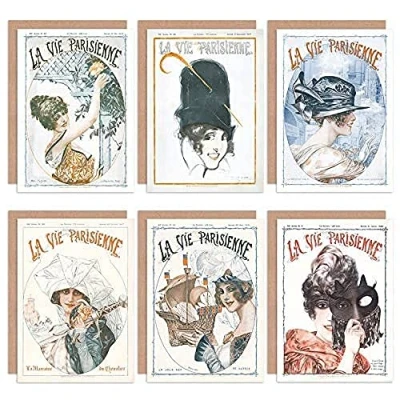 La Vie Parisienne French Woman Mask Ship Sword Army Greeting Cards With Envelopes Pack of 6