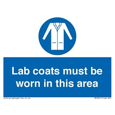 M906 : Wear a lab coat This sign is made from plastic semi-rigid 1mm 1mm thin plastic sign, can be screwed, stuck with adhesive, or attached with cable ties. Not suitable for hanging. A7 landscape Sign Text: Lab coats must be Worn in this area