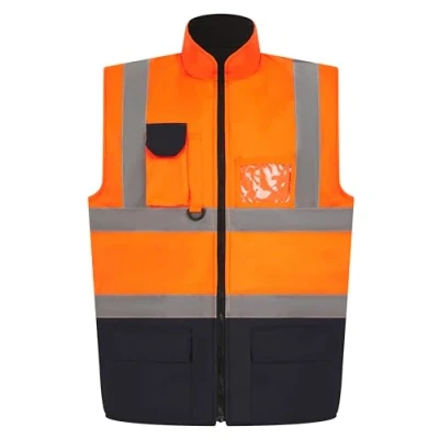 LABEL APPAREL Hi Vis Men Bodywarmer High Visibility Reversible Workwear Reflective Tape Sleeveless Waistcoat for Orange/Navy M