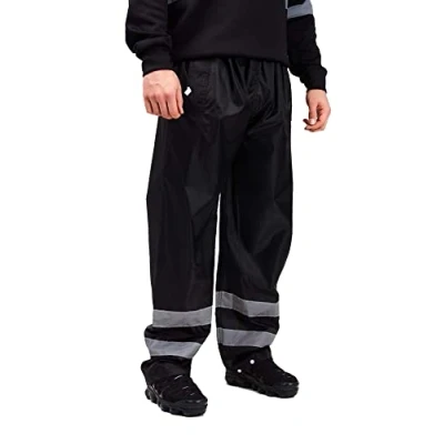 LABEL APPAREL Hi Vis Viz Waterproof Rain Safety Over Trousers Pants High Visibility (as8, Alpha, xx_l, Regular, Black)
