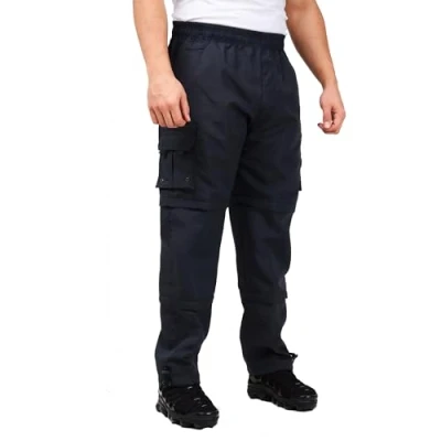LABEL APPAREL Mens 3 in 1 Zip Off Cargo Trousers 3/4 Shorts Elasticated Combat Pants Bottoms M 3XL Navy