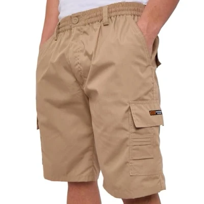 LABEL APPAREL Mens Cargo Combat Shorts Casual Cotton Elasticated Waist Regular Fit Short Workwear Half Pants, Beige Medium