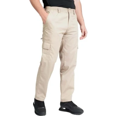 LABEL APPAREL Mens Cargo Trousers M 6XL Lightweight Elasticated Combat Pocket Work Pants Beige