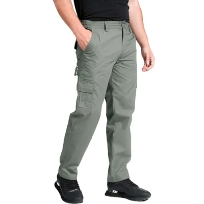 LABEL APPAREL Mens Cargo Trousers M 6XL Lightweight Elasticated Combat Pocket Work Pants Khaki
