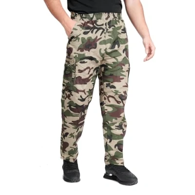 LABEL APPAREL Mens Fleece Lined Thermal Cargo Trousers Pants Elasticated Combat Bottoms M 3XL Green Camo