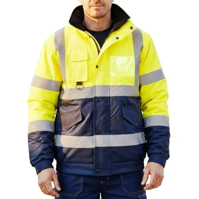 LABEL APPAREL Mens Hi Vis Bomber Jackets High Visibility Security Padded Waterproof Resistant Coats Reflective Tape Jacket, Yellow/Navy, M