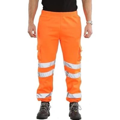 LABEL APPAREL Mens Hi Vis Fleece Cargo Combat Cuffed Joggers Trousers High Visibility Elasticated Waist Reflective Sweatpants Workwear Workout Safety Jogger Jogging Bottoms, Orange, XL