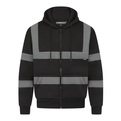 LABEL APPAREL Mens Hi Vis Hoodie Grey High Visibility Reflective Tape Zipper Workwears Long Sleeve Zipped Hoody Tops Fleece Sweatshirts Utility & Safety Jumper Pullover Black Small