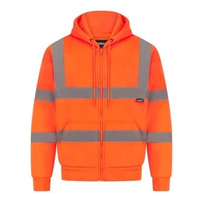 LABEL APPAREL Mens Hi Vis Hoodie Grey High Visibility Reflective Tape Zipper Workwears Long Sleeve Zipped Hoody Tops Fleece Sweatshirts Utility & Safety Jumper Pullover Orange 4XL