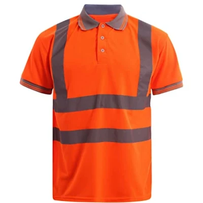 LABEL APPAREL Mens Hi Vis Tshirt Polyester High Polo Shirts Reflective Tape Work Utility & Safety Wears Breathable Lightweight Workwear Orange Large