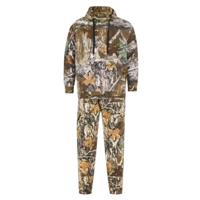 Mens Jungle Print Pullover Suit - Camouflage Hiking Fishing Outfit The jungle print design gives it a rugged look, and the regular fit suits all body types. It's crafted from a mix of 80% Cotton and 20% Polyester, so it's both durable and soft on your skin. Get your Jungle Print Pullover Hoodie Sewatpants Cuffed Trouser today and add some adventure to your wardrobe! available in regular and plus size Medium to 5XL
