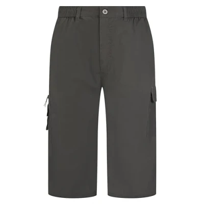 LABEL APPAREL Mens Plain Regular Fit Cargo Combat Shorts Elasticated Waist Casual Summer Work 3/4 Short Three Quarter Length Pants Trousers Grey