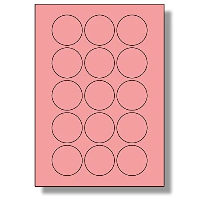 Label Planet® 15 Per Sheet, 5 Sheets (75 Round Pink Labels). Coloured Paper Labels, 51mm Diameter, LP15/51R C