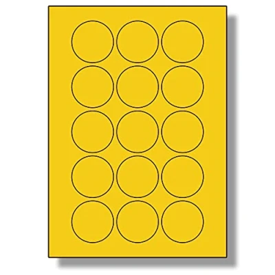 Label Planet® 15 Per Sheet, 5 Sheets (75 Round Yellow Labels). Coloured Paper Labels, 51mm Diameter, LP15/51R C