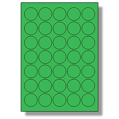 Label Planet® 35 Per Sheet, 5 Sheets (175 Round Green Labels). Coloured Paper Labels, 37mm Diameter, LP35/37R C.