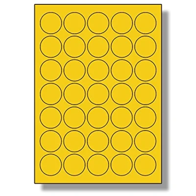 Label Planet® 35 Per Sheet, 5 Sheets (175 Round Yellow Labels). Coloured Paper Labels, 37mm Diameter, LP35/37R C.