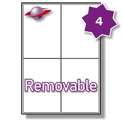 Label Planet® 4 Per Page/Sheet, 50 Sheets (200 REMOVABLE Sticky Labels), White Blank Plain Matt Paper A4 Multi Purpose Product Stickers, For Laser/Copier or Inkjet Printer, UK LP4/99 REM 99.1 x 139 MM