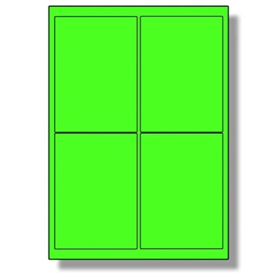 Label Planet® 4 Per Sheet, 25 Sheets (100 Fluorescent Green Labels). Labels for Laser Printers, 99.1 x 139mm, LP4/99 FC.