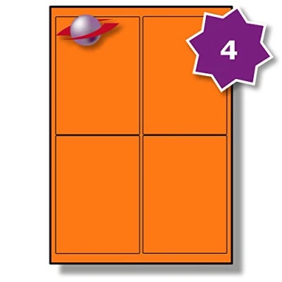 Label Planet® 4 Per Sheet, 25 Sheets (100 Fluorescent Orange Labels). Labels for Laser Printers, 99.1 x 139mm, LP4/99 FC.