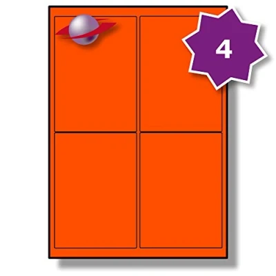 Label Planet® 4 Per Sheet, 5 Sheets (20 Tomato RED Labels). Coloured Paper Labels Rounded Corners, 99.1 x 139mm, LP4/99 C.