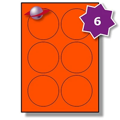Label Planet® 6 Per Page/Sheet, 10 Sheets (60 Large Round Tomato RED Labels), Circular Coloured Stickers for Laser/Inkjet Printers on Blank A4 Matt Paper, UK LP6/85RC, 85MM Diameter Circles.