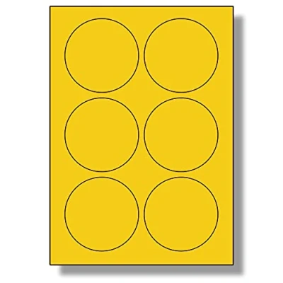 Label Planet® 6 Per Page/Sheet, 10 Sheets (60 LARGE YELLOW Round Sticky Labels), Matt Permanent A4 Circular Coloured Stickers, LP6/85RC, 85MM Diameter Circles, for All Uses