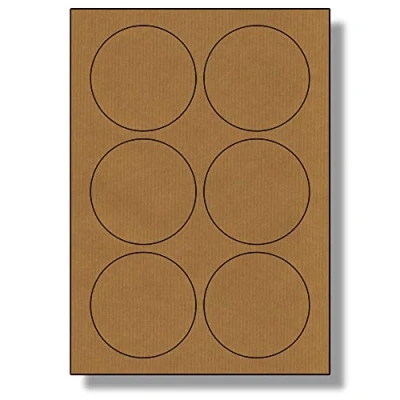 Label Planet® 6 Per Sheet, 5 Sheets (30 Round Brown Kraft Labels). Round, Brown, Ribbed, Craft Paper Labels. 88mm Diameter, LP6/88R BRK.