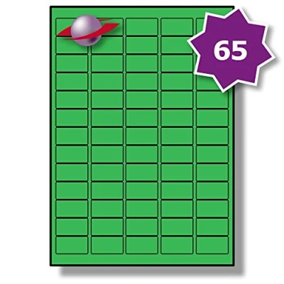 Label Planet® 65 Per Page/Sheet, 50 Sheets (3250 Sticky GREEN Mini Labels), Blank Plain Matt Quality A4 Coloured Stickers, for Laser/Copier/Inkjet Printer, UK LP65/38C, 21.2 x 38.1 MM, Colour Coding