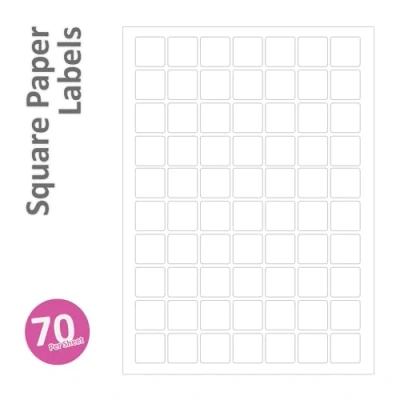 Label Planet® 70 Per Page/Sheet, 5 Sheets (350 Sticky Tiny Square Labels), White Blank Matt Self Adhesive Plain A4 Stickers, for Laser/Copier or Inkjet Printer, UK LP70/25/SQ, 25 x MM