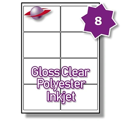 Label Planet® 8 Per Page/Sheet 5 Sheets (40 TRANSPARENT Sticky Labels) CLEAR GLOSS POLYESTER A4 Premium Printable Rectangle Stickers, Works 99.1 x 67.7 MM LP8/99 GCP, Multi Purpose