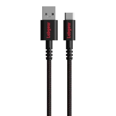 Labgear USB C Fast Charging Cable 1m Rugged A to Kevlar fibre 3A 18W Power 2.0 Data Transfer Heavy Duty Nylon Braided Black