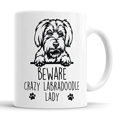 Labradoodle Mug Beware Crazy Lady Gift Dog for Birthday Christmas Friend, Mum, Auntie, Sister Ceramic Cup
