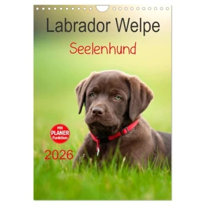 Quality – high-quality photo calendar with 12 beautiful motifs on light-resistant photo paper, robust spiral binding with hanging bracket. Sustainable – significant waste reduction through needs-based individual piece production, environmentally friendly FSC-certified paper, production in Germany, climate-conscious logistics. Perfect gift – calendar for friends and family, for children and adults, young and old, for Christmas, birthday or in between. Variety – picture calendar in various formats e.g. DIN A5, DIN A4, DIN A3 and DIN A2. Whether nature motif, paintings or photos, ideal for a personal feel-good atmosphere. Chocolate Labrador puppy, 9 weeks old, by author(s): Petra Schiller