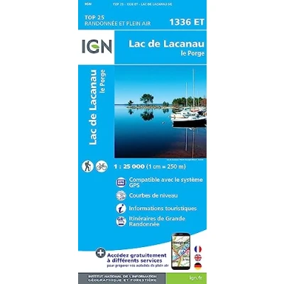 Top25 1336ET Lac de Lacanau, Le Porge walking and hiking map with...