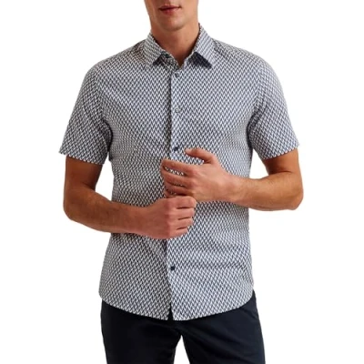 Short Sleeve Geo Printed Shirt brings a modern edge to classic tailoring. With its bold geometric print and lightweight short-sleeve design, LACESHO is perfect for smart-casual occasions or summer layering.