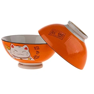 Maneki Neko cat bowls – 2 bowls featuring the famous cat Maneki Neko (in Japanese "saluting cat"), a traditional lucky figure found throughout Japan. This kawaii style set will delight lovers of Japanese cuisine. An original gift idea for all fans of cats and Asian culture. ✨ JAPANESE DECORATION - Orange in color, these bowls with a white background are decorated with a beautiful Maneki Neko pattern wearing a gold ligot in his right paw. This adorable sitting cat is a good luck charm in Japanese culture, it is depicted to attract good luck, prosperity and fortune. Original bowls for drinking and eating while attracting good fortune. Original bowls – these 2 bowls have a diameter of 15 cm and a height of 7.5 cm. Practical, these bowls are multi-used: rice bowls, soup bowls, tea bowls and other hot drinks, breakfast bowls, appetizer bowls, etc. They will give an Asian touch to your table with a typical Japanese style. 🎁 Original gift idea – This set of 2 bowls decorated with the famous Japanese cat Maneki Neko will be an original gift idea that will delight lovers of Japanese cuisine. A decorative object to give on any occasion (Christmas, birthday...) to please or treat yourself. LIVE FROM ASIA - La Chineuse is a French brand that sources and imports traditional Asian objects. Tea services, Japanese gardens, jewelry, statuettes, calligraphy, Zen decorations… We are looking for the most beautiful gift ideas and decoration to enhance your interiors and make your loved ones travel., Weight: 1.984160358 Pounds, Manufacturer: Lachineuse
