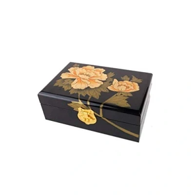 lachineuse jewellery box with gold peonies flowers storage made of lacquered wood & secrets Chinese decoration gift for women Asia idea 21 x