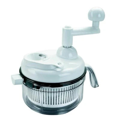 1 year warranty Dimensions: 17 x 18 x 17 cm Multi-functional, with a basket to spin-dry your salads, stainless steel blade to chop vegetables and herbs and whisk to make your dressing Capacity: 1 litre