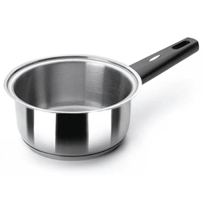 Saves energy Works on all kind of hobs Hygienic Made of 18/10 stainless steel Handles, grips and knob in heat resistant Bakelite Exterior glossy, polished finish and sanded matte interior Measures 12 cm diameter by 7 cm height Capacity 0.8 litres